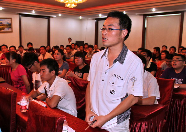 上午的開班儀式由公司人事部部長李英華主持,公司組織部部長王志峰致歡迎詞。08年應(yīng)聘分配到玉華礦、現(xiàn)任玉華礦生產(chǎn)科副科長的大學(xué)生陳朝、新招聘的大學(xué)生李明強(qiáng),分別代表新、老大學(xué)生在培訓(xùn)班上談體會(huì)、作表態(tài)發(fā)言。