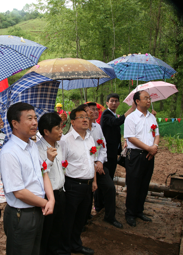 領導一行冒雨觀看鉆機開工