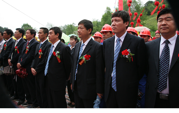 7月6日上午10時30分,冒著密集的雨滴,銅川礦業(yè)公司在下石節(jié)礦二號風井隆重舉行《焦坪礦區(qū)侏羅紀煤層地面井組瓦斯預抽采技術研究與應用》鉆井開工剪彩儀式。陜西煤業(yè)化工集團有限責任公司副總經理、總工程師閔龍,銅川礦業(yè)有限公司總經理宋志剛、公司黨委書記黃河,中煤科工集團西安研究院院長董書寧、黨委書記王澤進,銅川礦業(yè)有限公司副總經理、總工程師劉啟科、副總經理封建利,中煤科工集團西安研究院副院長張群、虎維岳,公司副總工程師延永華、戴耀輝、孔令義、吳新科、劉長來、田松堂、蘇啟惠、賈林安、惠東以及公司調度室、財務部、機械動力部、宣傳部、行政辦公室、黨委辦公室、技術開發(fā)部等部室領導和中煤科工集團西安研究院科研處、經營處、生產處、黨委辦公室和地質所等部門的領導,銅川礦業(yè)公司下石節(jié)煤礦黨政領導、干部職工共200余人參加開工典禮。