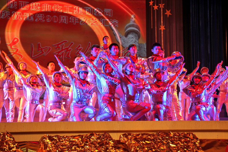 表彰大會(huì)結(jié)束后,由煤化集團(tuán)各成員企業(yè)職工自編自演的、主題為《唱支山歌給黨聽》的陜西煤業(yè)化工集團(tuán)公司慶祝中國(guó)共產(chǎn)黨成立90周年大型文藝匯演拉開帷幕,大合唱、舞蹈、歌伴舞、歌曲聯(lián)唱、陜北說(shuō)書、器樂(lè)演奏、音樂(lè)快板、詩(shī)與舞等精彩紛呈的文藝演出充分展示了煤化人的才藝和精神風(fēng)貌,讓觀眾享受到了一場(chǎng)別開生面的精彩文化盛宴。