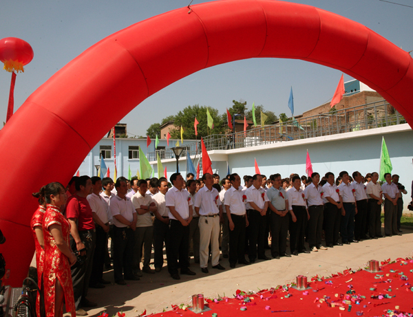 在隆隆的鞭炮聲中,伴隨著禮花的四射和震天的鑼鼓聲,郭寶輝、陳長遠、惠武功為此項工程竣工剪彩。隨后,參加竣工儀式的各位領導和來賓興致勃勃地參觀了該工程的生產(chǎn)車間工藝流程。