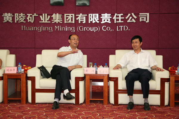黃陵礦業(yè)公司總經(jīng)理范京道與銅川礦業(yè)公司黨委書(shū)記黃河親切交談