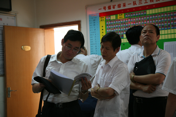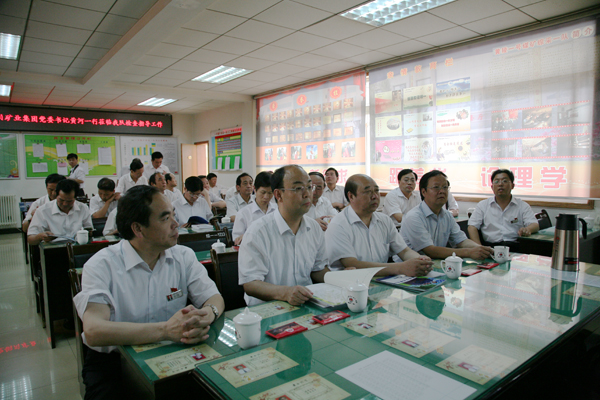6月14日早晨,銅川礦業(yè)公司參觀學(xué)習(xí)一行一下車(chē),就受到黃陵礦業(yè)公司領(lǐng)導(dǎo)的熱烈歡迎。先觀看了黃陵礦業(yè)公司形象宣傳片,在黃陵礦業(yè)公司政研會(huì)會(huì)長(zhǎng)、原黨委書(shū)記閆勃陪同下參觀了文化中心,感受到黃陵企業(yè)文化發(fā)展的歷程。接著,參觀學(xué)習(xí)人員分成兩組,一組由公司黨委書(shū)記黃河帶隊(duì)參觀黃陵企業(yè)文化地面建設(shè)情況;一組由公司副總、安監(jiān)部長(zhǎng)延永華,公司副總、生產(chǎn)部長(zhǎng)賈林安帶領(lǐng)生產(chǎn)礦井黨委書(shū)記、礦長(zhǎng)前往一號(hào)煤礦井下參觀。