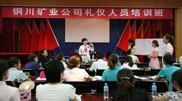 在建黨90周年即將來臨之際,為了承辦好集團公司慶祝建黨90周年“七一”表彰會及文藝匯演,銅川礦區(qū)工會在全局3000多名女員工中抽出30多名優(yōu)秀員工進行禮儀知識培訓。邀請了現(xiàn)擔任IPA國際注冊禮儀培訓中心主任、IPA國際禮儀培訓師考評委員會專家、中國專業(yè)人才庫禮儀專家委員會委員、高級禮儀講師揚揚授課。