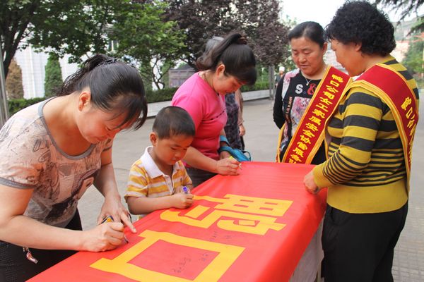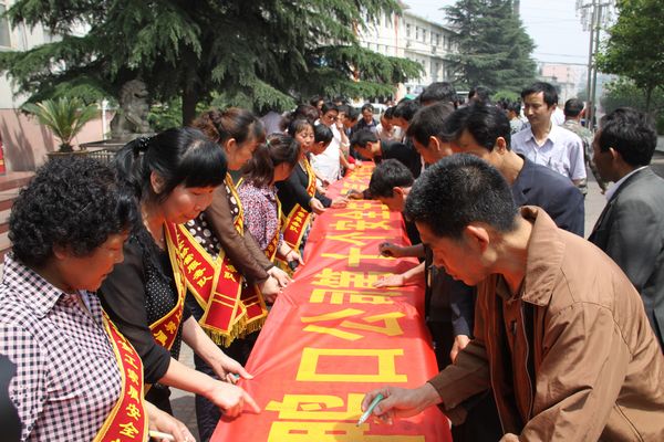 為組織開展好全國“第十個(gè)安全生產(chǎn)月”活動(dòng),唱響“安全責(zé)任、重在落實(shí)”主旋律,該公司黨、政、工、團(tuán)齊上陣,嚴(yán)部署、細(xì)安排,開展這次“千人安全大簽名”活動(dòng),早晨8點(diǎn)20分,該公司董事長兼總經(jīng)理張會(huì)縣、黨委書記蘭阿利,率領(lǐng)全公司干部員工在印有“安全責(zé)任、重在落實(shí)”的橫幅上莊嚴(yán)的簽上了自己的名字,隨后,機(jī)關(guān)各科室、采、掘、機(jī)、運(yùn)、通等單位的主管、書記帶領(lǐng)各單位人員進(jìn)行簽名,尤其是一位6歲的小學(xué)生在媽媽的陪同下,也在橫幅上簽下了自己的名字,身披授帶的家屬協(xié)管服務(wù)隊(duì)給活動(dòng)增添了色彩,形成了礦區(qū)一道亮麗的風(fēng)景線,活動(dòng)從早上8點(diǎn)20分一直持續(xù)到下午5點(diǎn)30分,共簽名1000余人次。