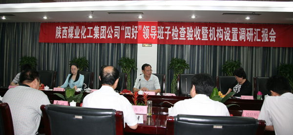 6月3日上午,陜西煤業(yè)化工集團(tuán)“四好”領(lǐng)導(dǎo)班子檢查驗收暨機(jī)構(gòu)設(shè)置調(diào)研匯報會在煤業(yè)賓館舉行。此行由煤化集團(tuán)黨群工作部部長夏迎廣、副部長王理軍率領(lǐng)檢查小組一行八人前來我公司對“四好”領(lǐng)導(dǎo)班子情況進(jìn)行檢查驗收,并調(diào)研機(jī)構(gòu)設(shè)置情況。公司領(lǐng)導(dǎo)黃河、劉水利、薛鳴、劉啟科、張志文,副總賈林安,公司相關(guān)各部門負(fù)責(zé)人等參加了匯報會。
