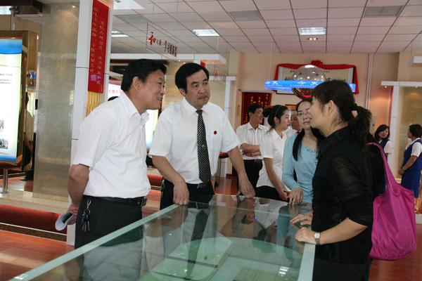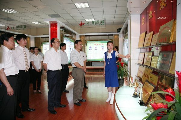 匯報會結(jié)束后,夏迎廣、黃河、張志文等一同赴供應(yīng)分公司檢查指導(dǎo)企業(yè)文化工作。組織部部長王志鋒、黨辦室主任許江濤等陪同。局百人軍樂隊列隊相迎,檢查小組與會領(lǐng)導(dǎo)在供應(yīng)分公司領(lǐng)導(dǎo)的陪同下,參觀了文化長廊、廉潔文化室、圖書室、文體活動室、預(yù)備役器材室,在軍隊樂演奏廳,大家駐足欣賞了分公司經(jīng)理郜鵬即興彈奏的鋼琴曲,大家拍手叫好。夏迎廣說,幾年沒有來這里了,想不到供應(yīng)處變化挺大的,職工們精神抖擻,處處彰顯了“和”文化的氣息。
