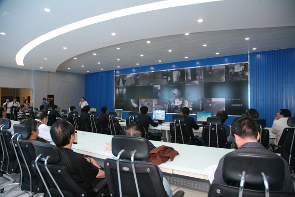 采風(fēng)團(tuán)一行來(lái)到現(xiàn)代化的玉華礦信息管理中心主控機(jī)房,饒有興趣的了解礦井生產(chǎn)安全情況。當(dāng)看著大幅液晶顯示屏上實(shí)時(shí)視頻監(jiān)控系統(tǒng)上距離地面500米下的滾滾的“煤流”,作家們激動(dòng)不已,紛紛詢問(wèn)井下生產(chǎn)運(yùn)行情況,感嘆現(xiàn)代化煤炭生產(chǎn)的突飛猛進(jìn)。