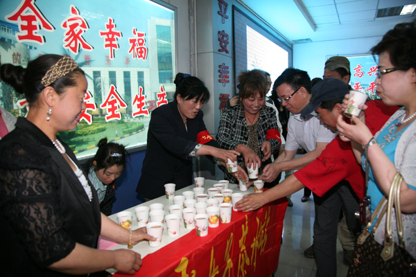 作家們紛紛上前品嘗著甜美、溫馨的“礦嫂水”