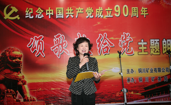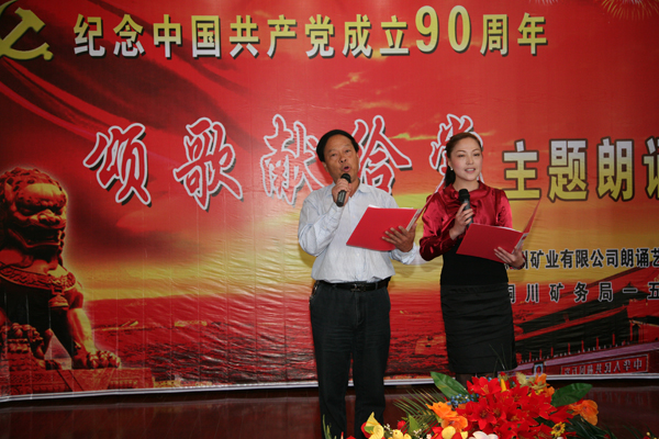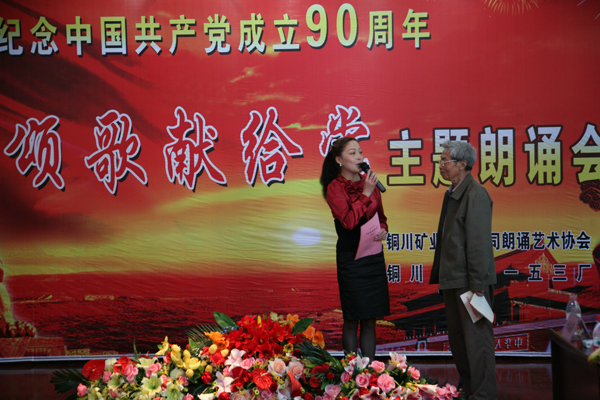 5月12日,銅川礦業(yè)公司朗誦藝術(shù)協(xié)會(huì)舉辦了“頌歌獻(xiàn)給黨”詩(shī)歌朗誦會(huì)。朗誦藝術(shù)協(xié)會(huì)主席、礦區(qū)工會(huì)副主席梁桂香,朗誦藝術(shù)協(xié)會(huì)副主席、公司紀(jì)委監(jiān)察處處長(zhǎng)陳建斌,朗誦藝術(shù)協(xié)會(huì)副主席、供應(yīng)處處長(zhǎng)郜鵬,朗誦藝術(shù)協(xié)會(huì)秘書(shū)長(zhǎng)、一五三廠黨委副書(shū)記、紀(jì)委書(shū)記、工會(huì)主席張興國(guó)以及朗誦協(xié)會(huì)會(huì)員20余人進(jìn)行了精彩的表演。本次詩(shī)歌朗誦會(huì)還特邀了中國(guó)音樂(lè)著作權(quán)協(xié)會(huì)會(huì)員、《唱支山歌給黨聽(tīng)》詞作者姚筱舟和省紀(jì)委警示室主任紀(jì)大海,一五三廠黨委書(shū)記李岐、廠長(zhǎng)申聯(lián)選、副廠長(zhǎng)田岳洲、郭玉俠以及一五三廠部分職工,為朗誦藝術(shù)協(xié)會(huì)添了光彩。