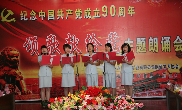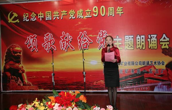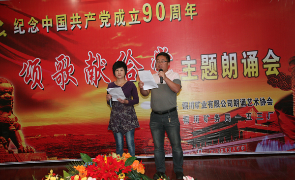 銅川礦業(yè)公司朗誦藝術(shù)協(xié)會(huì)成立于2009年的春天,志趣相投的員工相聚在一起,共同走進(jìn)詩(shī)情畫(huà)意之中,享受詩(shī)歌帶來(lái)的歡樂(lè);一起走進(jìn)朗誦藝術(shù)的殿堂,享受朗誦藝術(shù)帶來(lái)的心靈震撼!在建黨90周年即將到來(lái)之際,用詩(shī)歌朗誦表達(dá)對(duì)偉大祖國(guó)的熱愛(ài),用心靈之歌贊美偉大的中國(guó)共產(chǎn)黨。