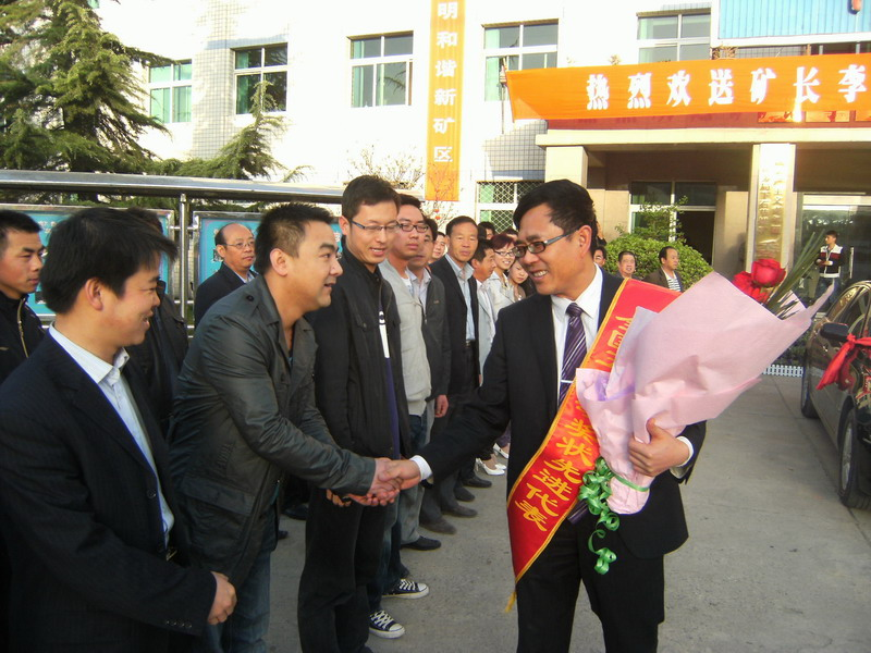 下石節(jié)礦礦長李文輝臨行前與該礦干部職工親切握手
