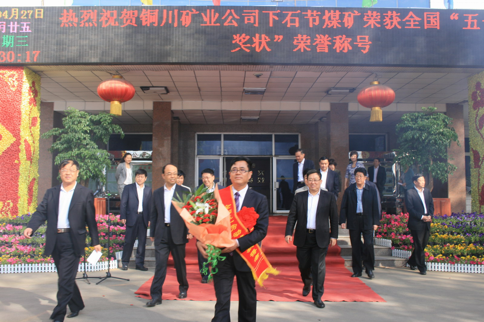 在2010年度全國勞模和“‘五一’ 勞動獎狀”評選活動中,礦業(yè)公司下石節(jié)礦憑借他們堅強(qiáng)的領(lǐng)導(dǎo)班子、特別能戰(zhàn)斗的職工隊伍和科學(xué)的管理水平及驕人的工作成績,榮獲全國“‘五一’ 勞動獎狀”殊榮,成為礦業(yè)公司(局)歷史上第一個獲此殊榮的單位,也是陜西煤炭系統(tǒng)2010年度唯一獲得此項(xiàng)殊榮的單位。下石節(jié)礦礦長李文輝將代表該礦赴京受獎,參加全國頒獎暨表彰大會。