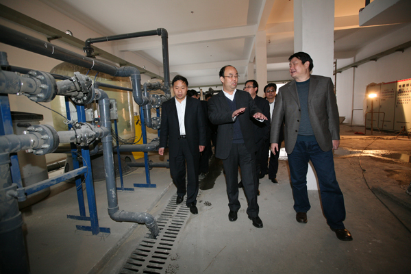 規(guī)劃部部長田松堂介紹污水處理設(shè)備安裝情況