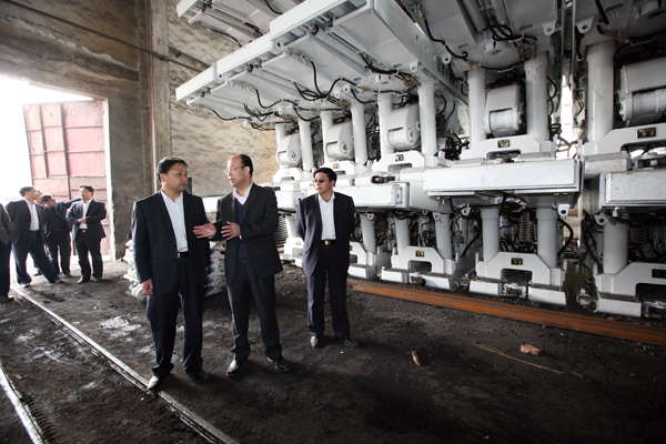 4月7日上午,銅川礦業(yè)公司黨委書記黃河帶領(lǐng)黨委組織部、宣傳部、黨辦室、規(guī)劃部負(fù)責(zé)人一行深入金華山礦調(diào)研,先后到礦井污水處理廠、綠色環(huán)保煤廠、家屬區(qū)供暖鍋爐、綜合樓等處查看地面建設(shè)情況。每到一處,黃書記詳細(xì)察看工程進(jìn)度,了解工程進(jìn)展情況,對陪同的部室領(lǐng)導(dǎo)和礦領(lǐng)導(dǎo)提出了具體要求。