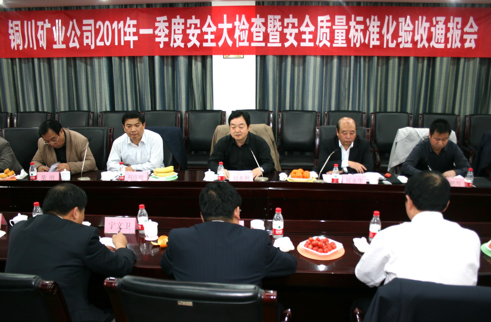 礦業(yè)公司副總經理、安監(jiān)局長劉水利作重要講話,他首先對公司一季度安全質量標準化檢查驗收情況給予充分肯定,認為公司和各礦井都很重視,檢查驗收很認真,通報的情況很真實。