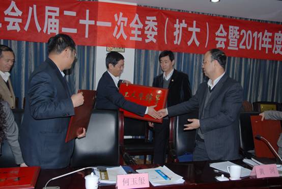 公司黨委書記黃河同志為受表彰的基層工會頒發(fā)獎牌