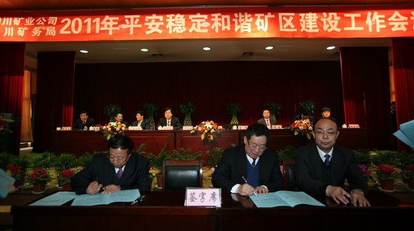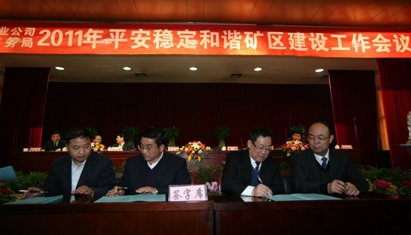 公司黨政領(lǐng)導(dǎo)宋志剛、黃河與各礦井、社區(qū)分別簽訂了平安穩(wěn)定責(zé)任書。