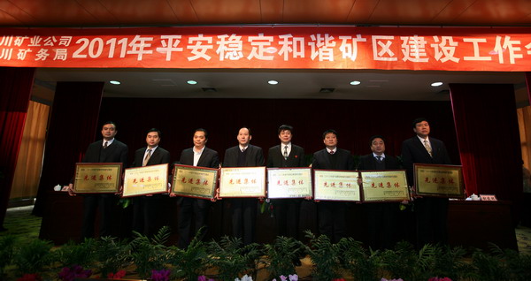 會上,公司黨政領(lǐng)導(dǎo)為先進集體頒發(fā)了獎牌。下石節(jié)礦、徐家溝公司、王家河社區(qū)結(jié)合本單位的實際,作了維護平安穩(wěn)定的經(jīng)驗介紹。