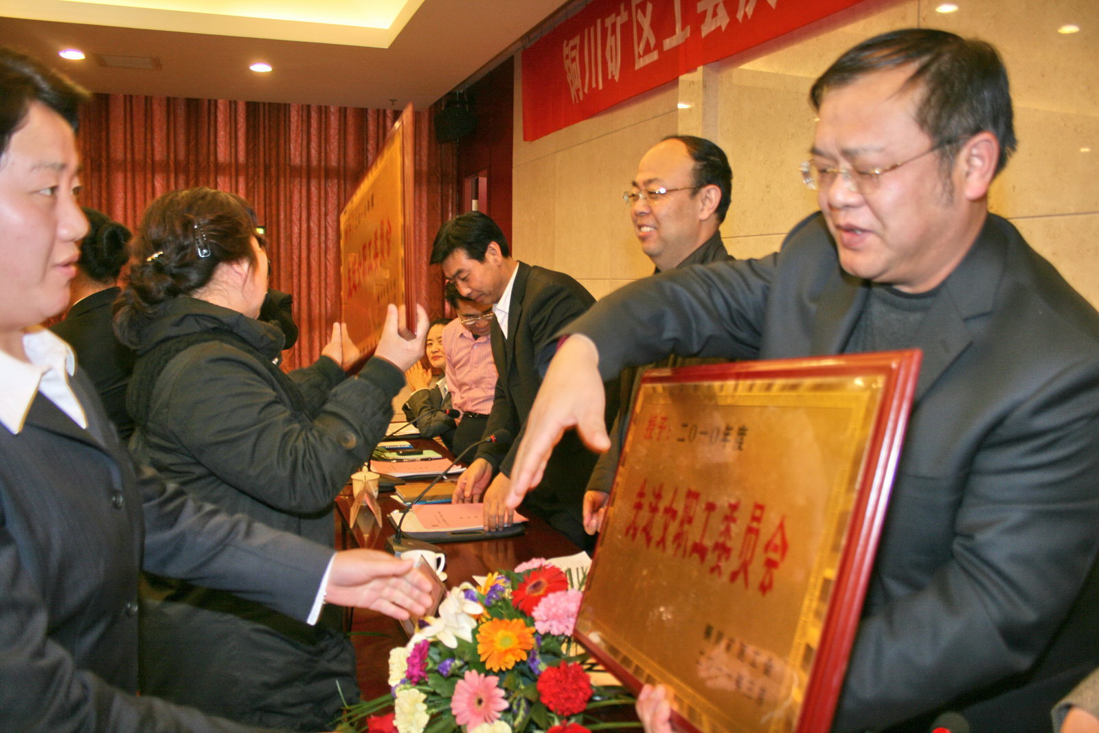 礦區(qū)工會副主席何玉璽等為先進頒獎