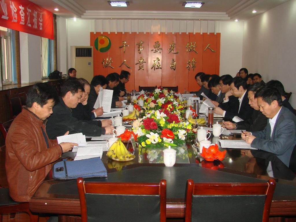 匯報會在該礦二樓會議室召開了,該礦黨委書記杜進良、礦長解耀明分別代表礦黨政對檢查組一行表示了熱烈歡迎,礦黨委副書記田戰(zhàn)強就王石凹礦2010年“三型六化”創(chuàng)建工作向檢查組作了匯報,匯報材料以課件圖文并茂的形式展現(xiàn)了該礦一年來創(chuàng)建工作成果,該礦黨委副書記、工會主席王鵬及黨群各部門負責(zé)人參加了會議。