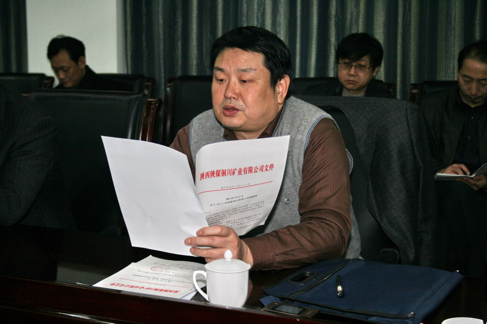 規(guī)劃處處長(zhǎng)田松堂宣讀礦業(yè)公司2011年國(guó)債項(xiàng)目管理辦法
