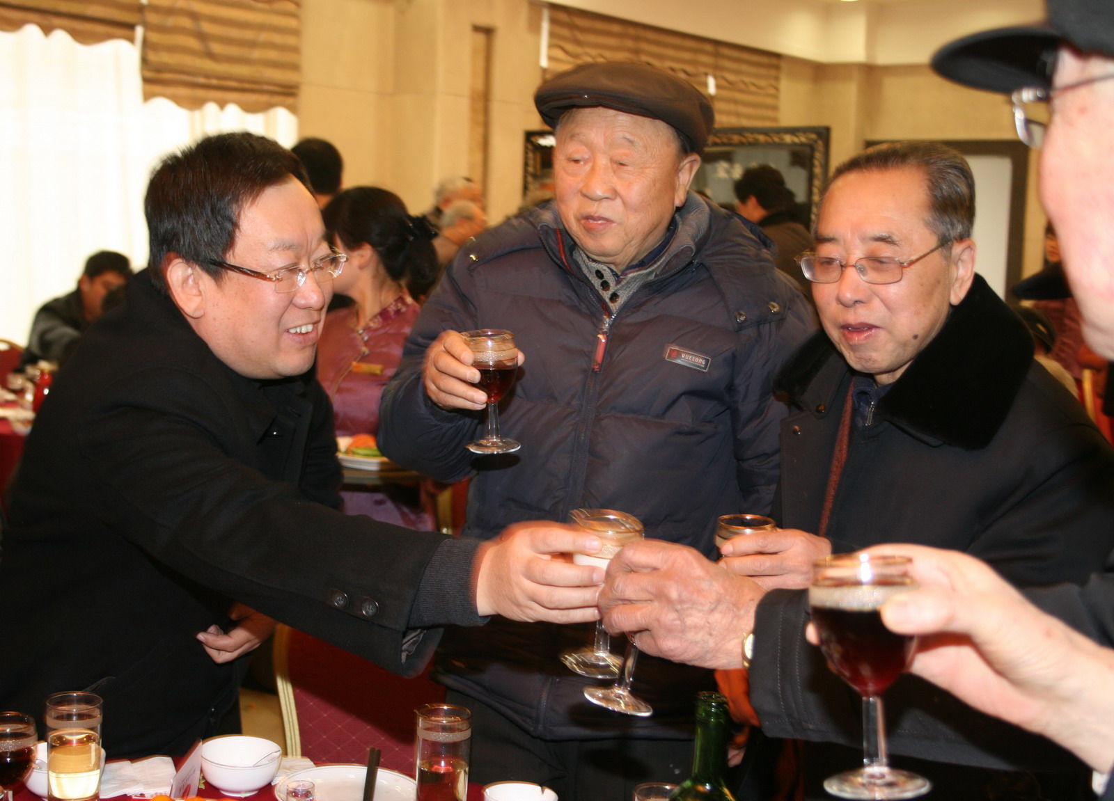 局長(zhǎng)宋志剛和老干部碰杯,祝他們身體健康,生活幸福