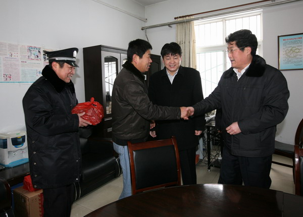 郭局長、封局長來到保衛(wèi)處,慰問了我們保衛(wèi)處的干部職工。越是到喜慶的節(jié)日,你們保衛(wèi)處的任務(wù)就更加繁重,別人休假放松,你們卻要繃緊思想弦,肩上的擔(dān)子不輕。相信你們一定不會辜負(fù)局黨政的厚望。
