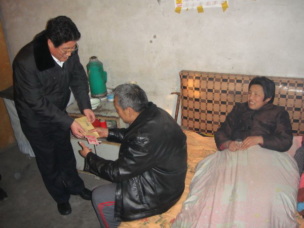 在病亡遺屬王翠英家,封建利副局長(zhǎng)一行走上前去,向她表示親切的慰問(wèn),王翠英激動(dòng)的說(shuō):“謝謝你們,你們還沒(méi)有忘了我啊。”當(dāng)了解到她今年已經(jīng)63歲,丈夫患精神病多年后病故,三個(gè)子女,兩個(gè)無(wú)業(yè),自己堅(jiān)持干些臨時(shí)工作補(bǔ)貼家用時(shí)。封建利副局長(zhǎng)拉著她的手稱贊她自強(qiáng)不息的精神,并關(guān)切地問(wèn)在生活上還有什么困難,鼓勵(lì)她對(duì)未來(lái)充滿信心。隨后一行人沿著拆遷區(qū)崎嶇的小道來(lái)到因工受傷現(xiàn)以退養(yǎng)的侯青強(qiáng)家,“家里幾口人?三個(gè)孩子都上高中嗎?家里收入怎樣?……”,封建利副局長(zhǎng)一行拿出慰問(wèn)金和米面油,一邊送到無(wú)業(yè)且患風(fēng)濕病多年的侯青強(qiáng)妻子手中,一邊噓寒問(wèn)暖,仔細(xì)詢問(wèn)家里的困難情況。“日子一定會(huì)過(guò)得越來(lái)越好的”,一行人從不同角度紛紛鼓勵(lì)她堅(jiān)持治療、堅(jiān)持鍛煉,樂(lè)觀地面對(duì)困難,爭(zhēng)取病情好轉(zhuǎn)。