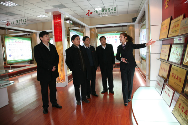 在簡要聽取了該處紀(jì)委的工作匯報(bào)之后,岳廳長實(shí)地參觀了該處的軍樂隊(duì)訓(xùn)練大廳、職工健身活動中心、職工讀書閱覽吧等,在走廊過道、活動展廳,該處職工自己潑墨丹青、揮毫濃筆的文化牌匾,濃郁著強(qiáng)烈的文化氣息和企業(yè)凝聚力,引起岳廳長駐足長觀。特別是該處以“和”為主題的企業(yè)文化展覽廳風(fēng)格獨(dú)特,形式新穎,岳廳長饒有興致,他細(xì)心查看黨務(wù)公開專欄,認(rèn)真翻閱企業(yè)文化圖冊,耐心詢問職工的業(yè)余文化生活。充分肯定了供應(yīng)處高度重視紀(jì)檢監(jiān)察工作,創(chuàng)新紀(jì)檢工作模式,在紀(jì)檢文化建設(shè)工作上所取得的成績。希望供應(yīng)處不斷創(chuàng)新工作機(jī)制,完善工作方式方法,健全行政效能監(jiān)察工作體系和黨風(fēng)廉政建設(shè)組織體系,使紀(jì)檢監(jiān)察長效機(jī)制發(fā)揮更大作用。