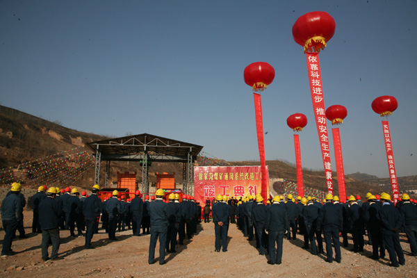 2011年元月12日,銅川礦業(yè)公司徐家溝礦有限公司鑼鼓喧天,彩旗飄飄,局長(zhǎng)宋志剛、局黨委副書記、常務(wù)副局長(zhǎng)黃河、副局長(zhǎng)劉啟科、副局長(zhǎng)封建利、副總工程師延永華、戴耀輝、孔令儀、熊鵬輝以及相關(guān)處室負(fù)責(zé)人冒著凜冽的寒風(fēng)來(lái)到徐家溝礦,參加徐家溝礦新風(fēng)井竣工投運(yùn)儀式。