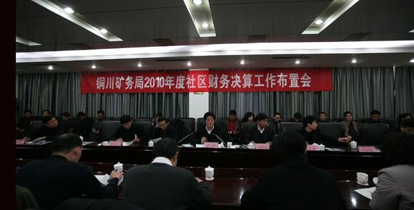 12月28日下午3點(diǎn),銅川礦務(wù)局在煤業(yè)賓館二樓會(huì)議室召開了2010年度社區(qū)財(cái)務(wù)決算工作布置會(huì)。副局長郭寶輝主持會(huì)議。來自社區(qū)的負(fù)責(zé)人及財(cái)務(wù)科、勞社科、物業(yè)科科長共60余人參加了會(huì)議。