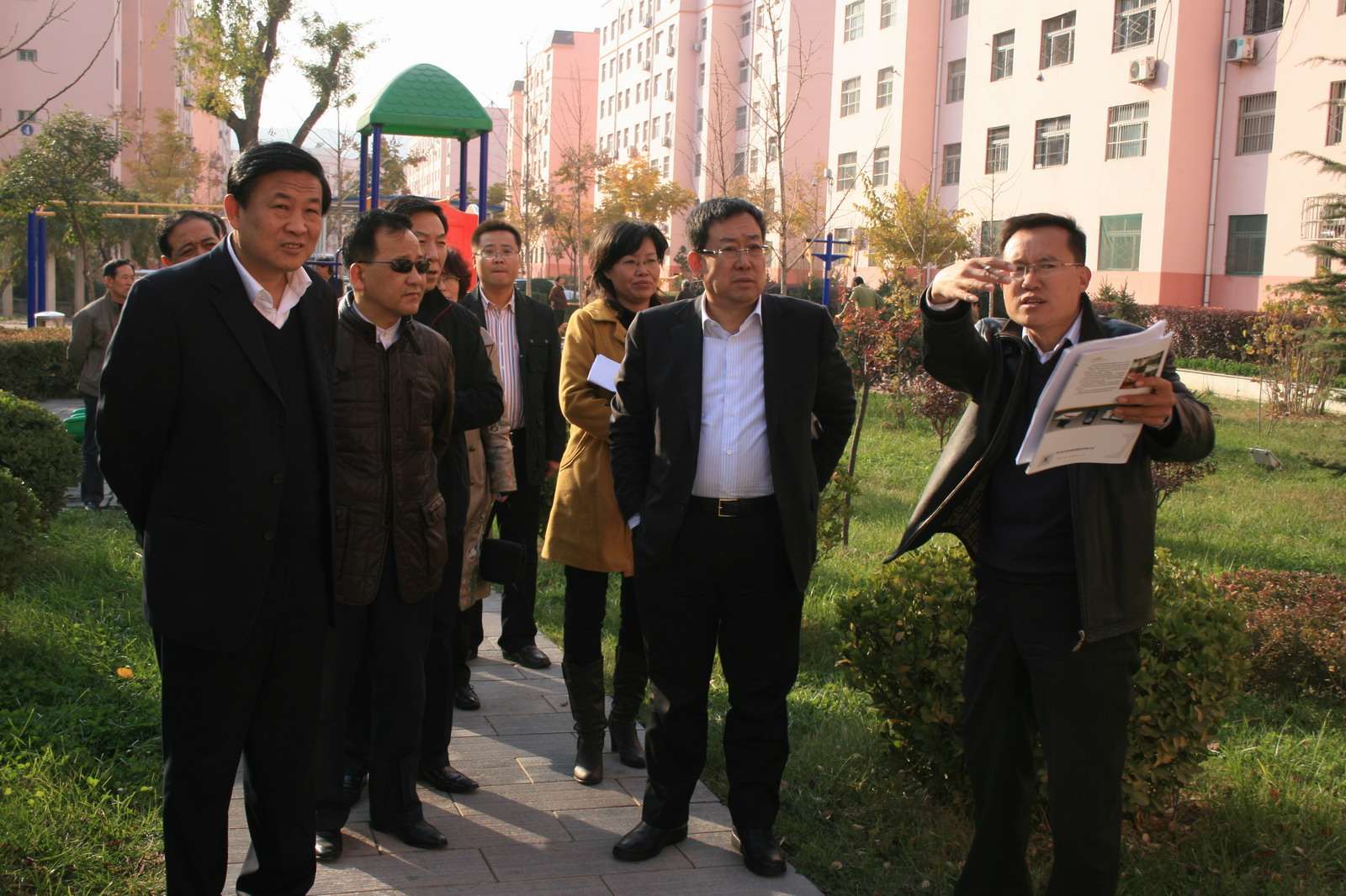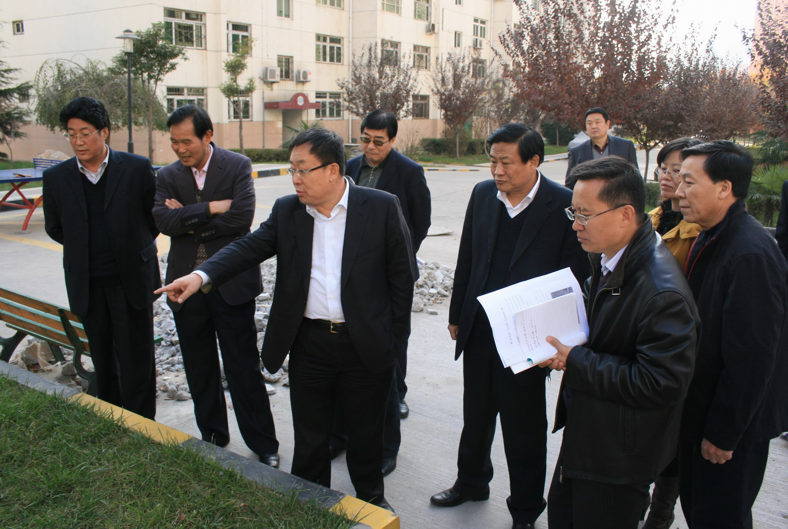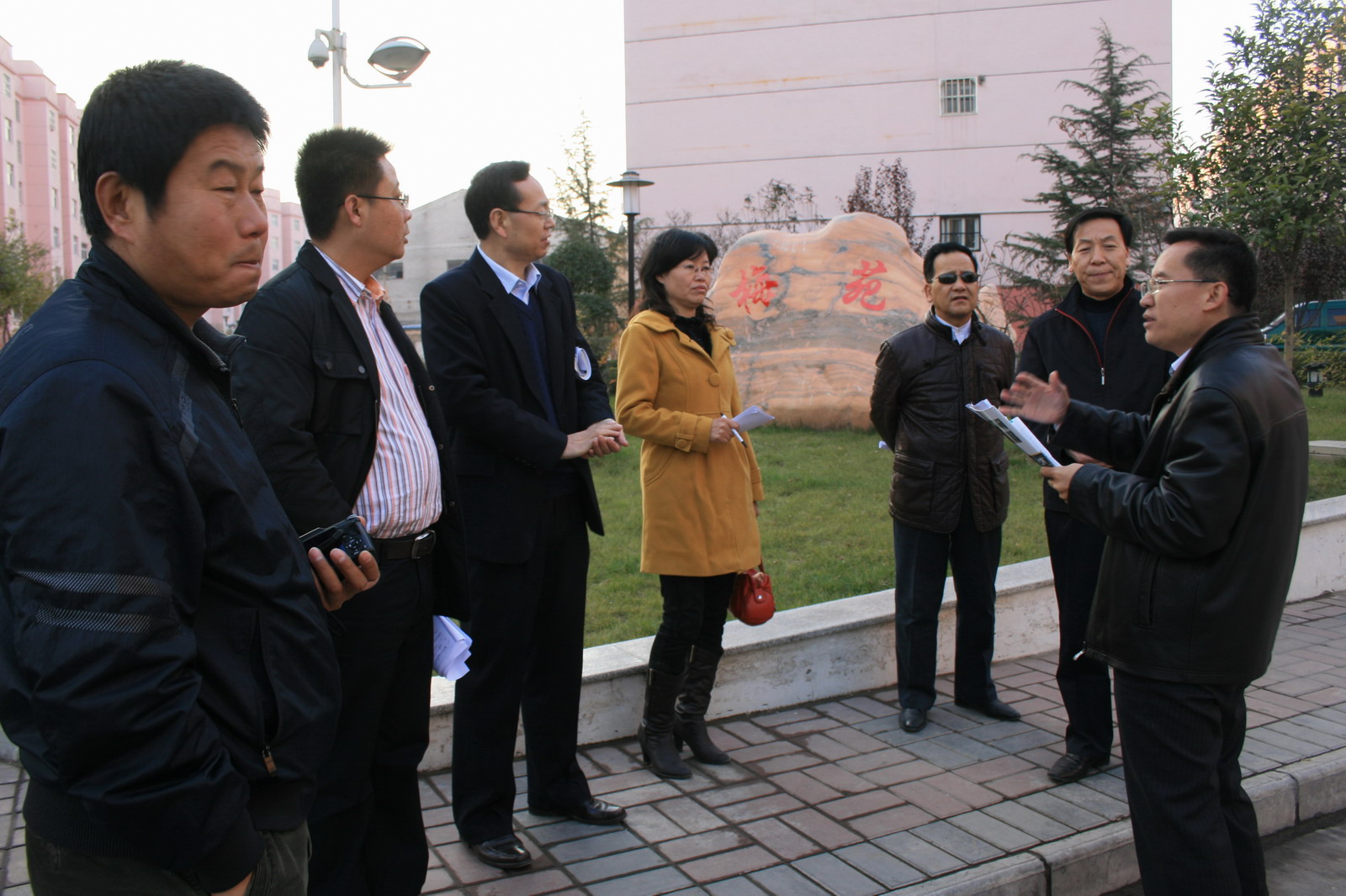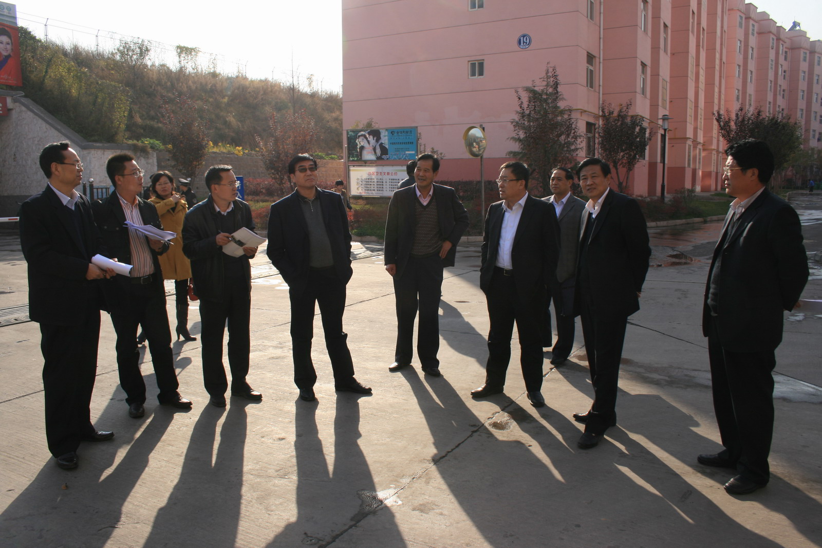 11月15日下午,局長宋志剛,公司黨委副書記、紀委書記張志文,副局長郭寶輝一行深入梅苑小區(qū),現(xiàn)場研究公司“文化園”建設(shè)方案。公司紀委、監(jiān)察處、規(guī)劃處、機關(guān)工委、物業(yè)總公司、梅苑小區(qū)分公司、宣傳部、奧博企業(yè)集團西安川普現(xiàn)代裝飾材料有限公司等有關(guān)部門單位負責人及相關(guān)工作人員,隨同公司領(lǐng)導(dǎo)一起到現(xiàn)場辦公。