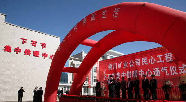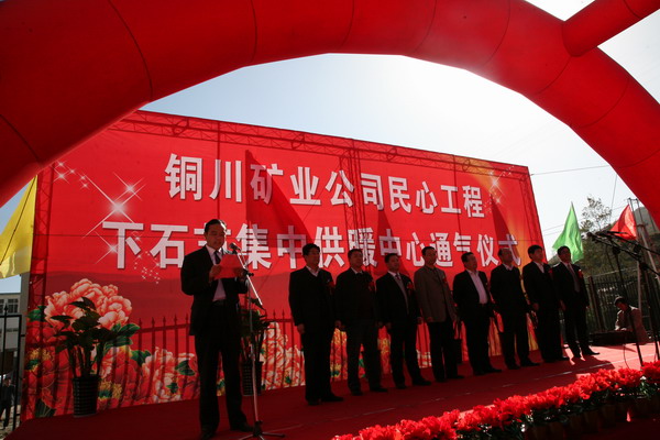 秋去冬來,寒氣襲人。11月9日上午,下石節(jié)礦招待所院內(nèi)鑼鼓喧天,鞭炮齊鳴,彩帶飛舞,大型紅色氣球標語高高飄揚,處處洋溢著喜慶的氣氛。下石節(jié)礦集中供暖中心通氣儀式在這里隆重舉行。礦業(yè)公司黨政領導宋志剛、杜樹山、張仿文、黃河、薛鳴、郭寶輝、封建利等出席,公司機關有關處室負責人和設計、施工、監(jiān)理單位及省、市新聞媒體、礦上職工群眾數(shù)百人參加了通氣儀式。