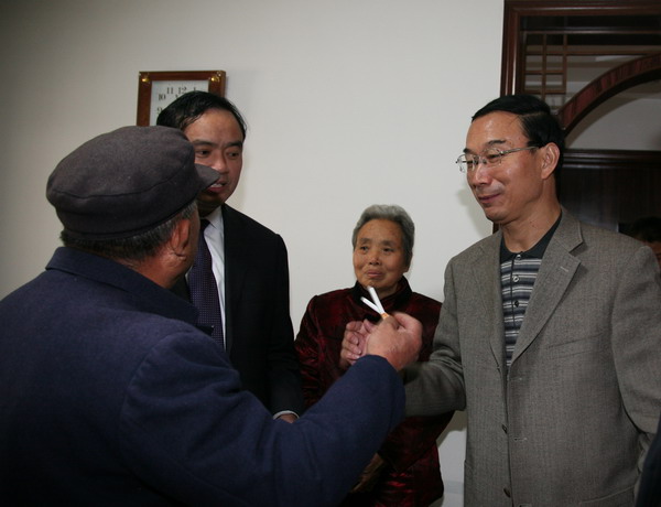 74歲的老工人李學會激動地熱淚盈眶,非要讓領導抽一支煙表心意