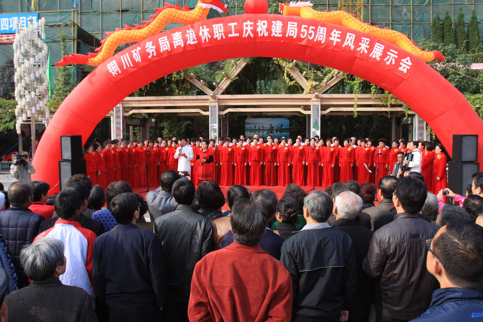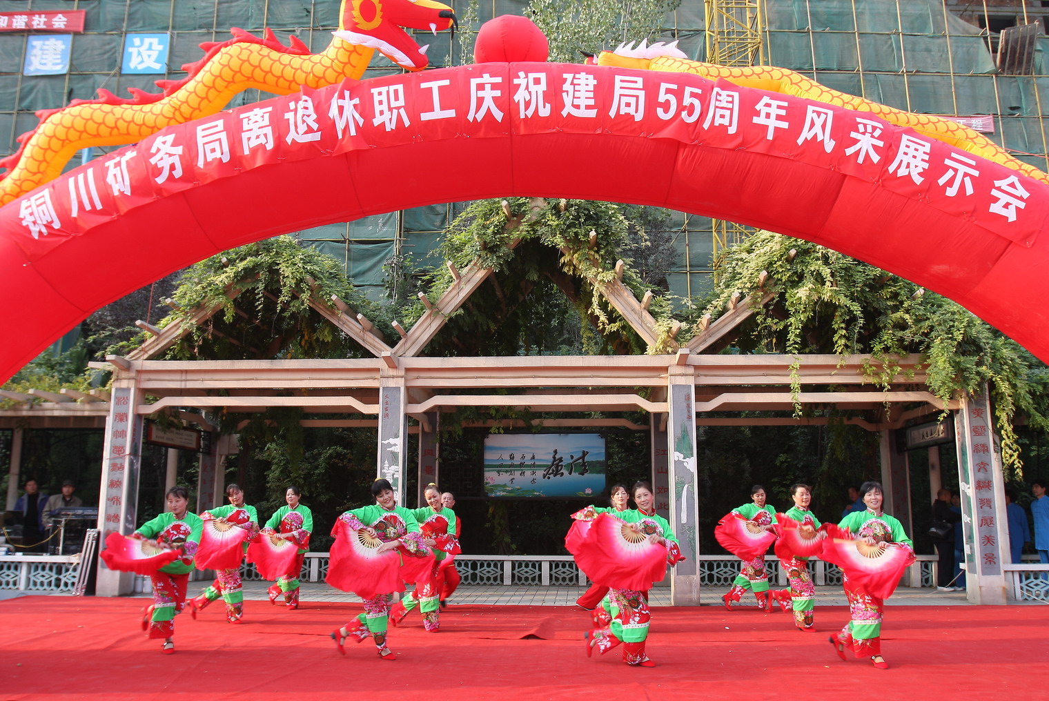 10月27日下午,由局老齡委主辦的銅川礦務(wù)局離退休職工慶祝建局55周年風(fēng)采展示系列活動在供應(yīng)處新和廣場拉開序幕。局黨委副書記、紀(jì)委書記張志文、副局長郭寶輝,局離退休處、干部處、供應(yīng)處、干休所、桃園社區(qū)、礦工報社等單位領(lǐng)導(dǎo)和離退休職工家屬上千人觀看了演出。