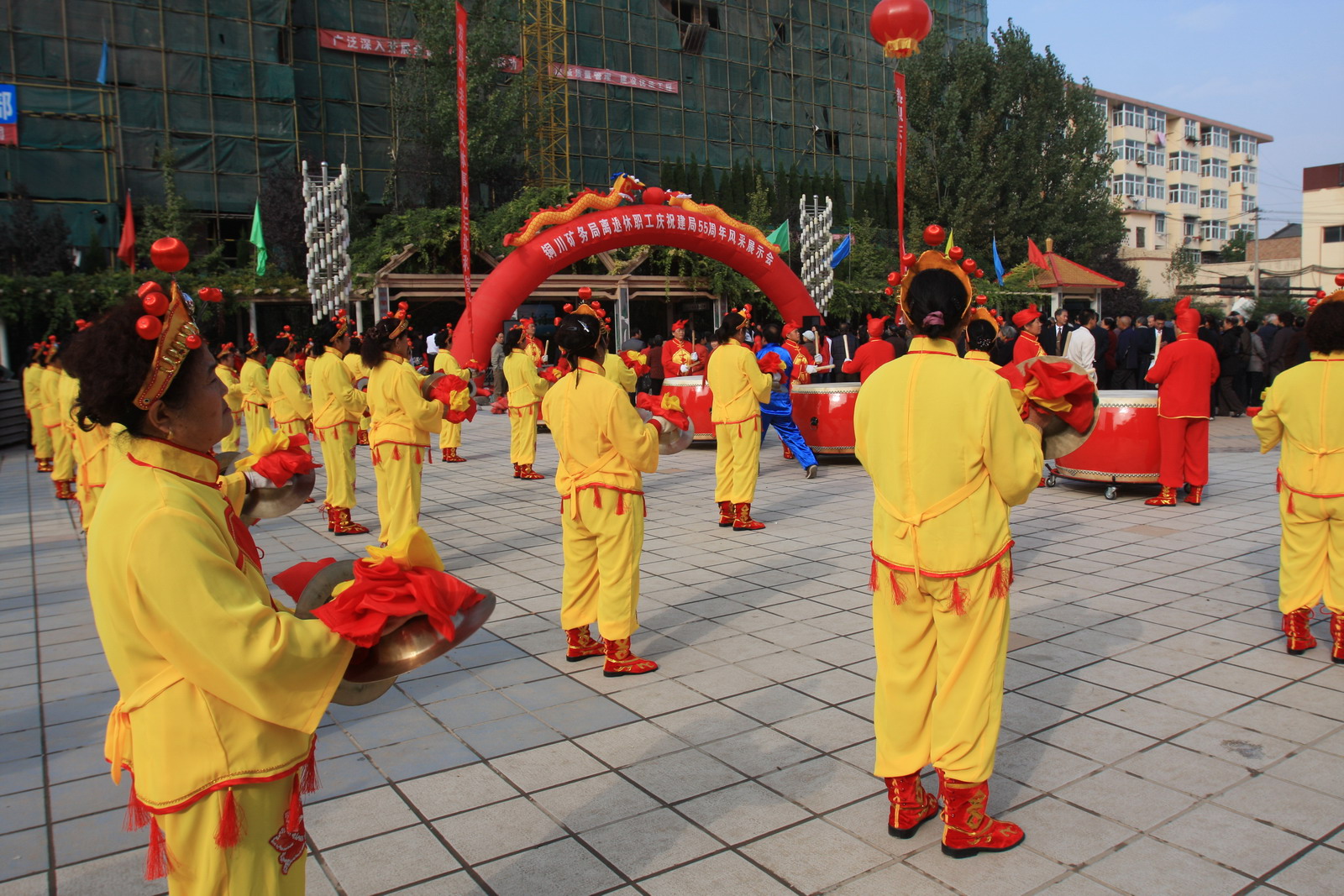 桃園社區(qū)威風(fēng)鑼鼓為離退休職工慶祝建局55周年風(fēng)采展示會臨陣助威
