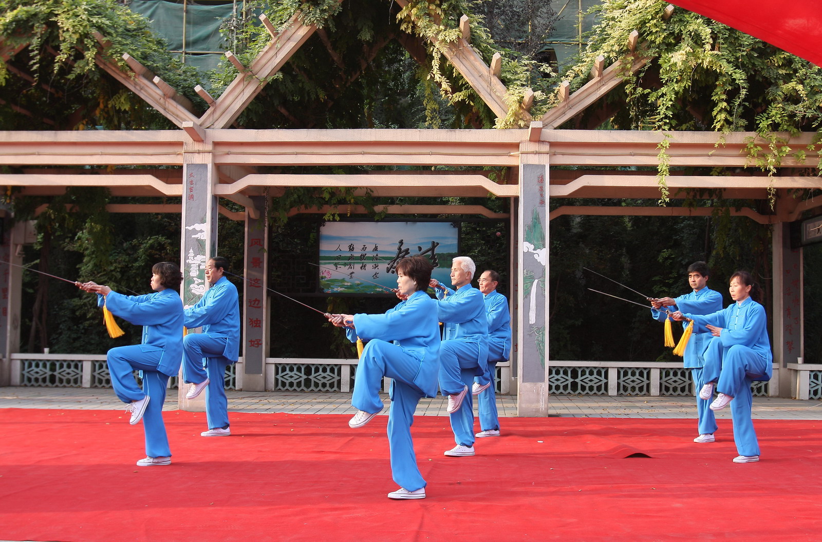 三里洞社區(qū)離退休職工展示的太極拳表演