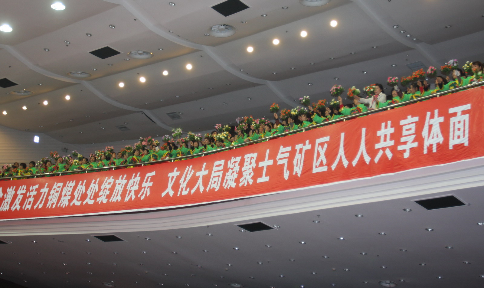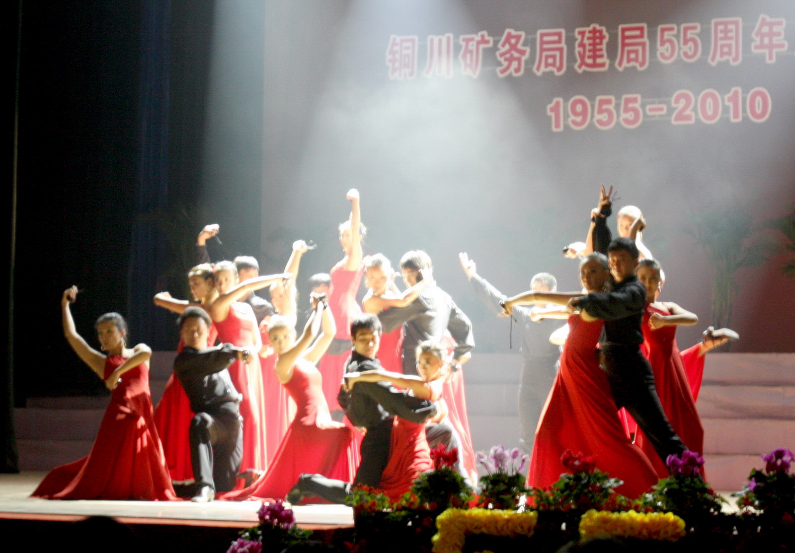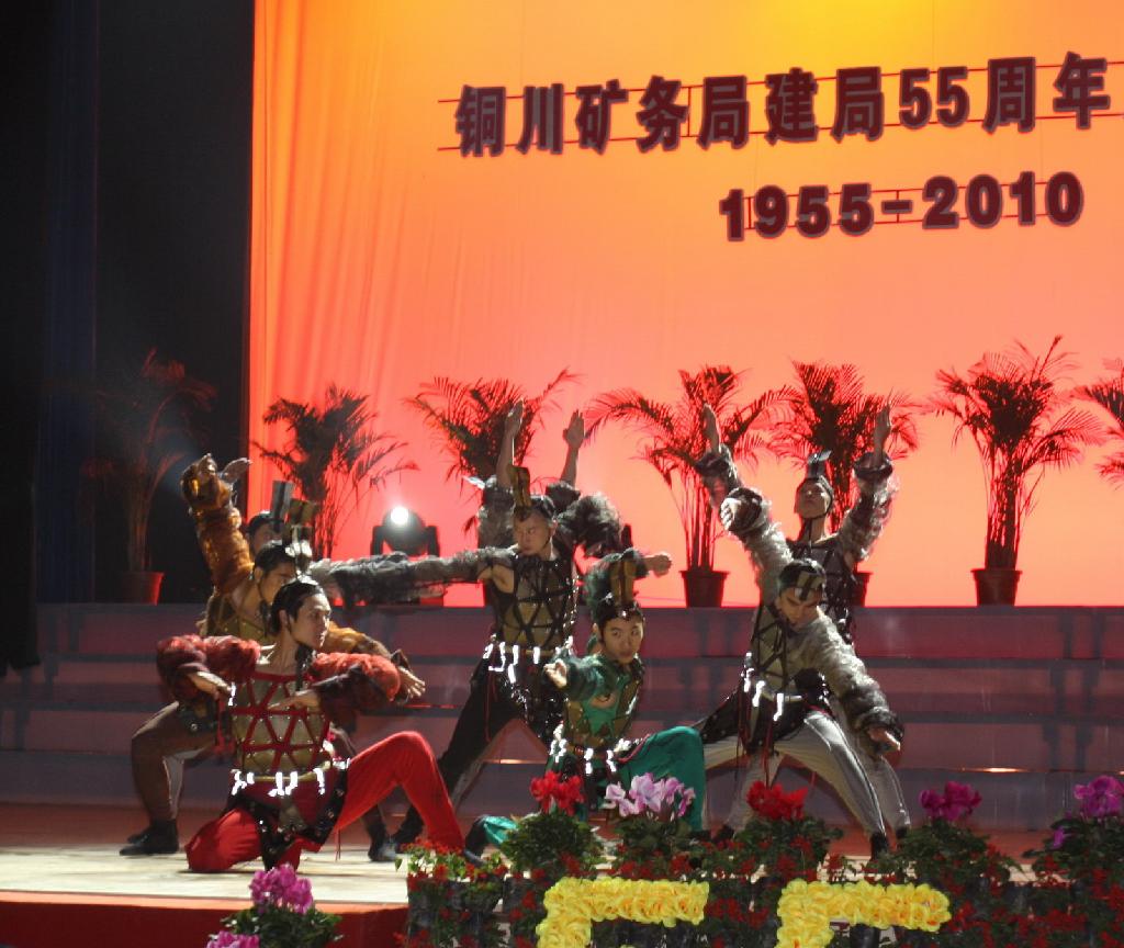 隨后,“中國(guó)煤礦文工團(tuán)”進(jìn)行了演出,整臺(tái)文藝演出始終在“喜慶熱烈,蓬勃向上”的氛圍中進(jìn)行,節(jié)目?jī)?nèi)容豐富,表演形式多樣,有詩(shī)朗誦、舞蹈、相聲、樂(lè)舞、男、女聲獨(dú)唱、歌舞等。特別是詩(shī)朗誦《銅煤禮贊》,讓觀眾感受到了銅川煤礦55年的發(fā)展歷程,銅煤人對(duì)安全、穩(wěn)定的重視和對(duì)銅川礦區(qū)美好明天的祝愿;男聲二重唱《礦工萬(wàn)歲》以高亢動(dòng)人的歌聲贊美了煤礦工人的無(wú)私奉獻(xiàn)精神,表達(dá)對(duì)礦工兄弟的衷心祝福;舞蹈《激情紅與黑》讓觀眾在動(dòng)人的旋律和優(yōu)美的舞姿中感受了礦工們火熱的情懷、樂(lè)觀的生活態(tài)度;男聲獨(dú)唱《旗開(kāi)得勝》、《中國(guó)龍》、《老前輩》的青年歌手亞民精彩感人的演唱,引起了全場(chǎng)一浪高過(guò)一浪的熱情歡呼,把整場(chǎng)演出推向高潮,演員們兩個(gè)小時(shí)的精彩演出,博得現(xiàn)場(chǎng)觀眾陣陣熱烈的掌聲。