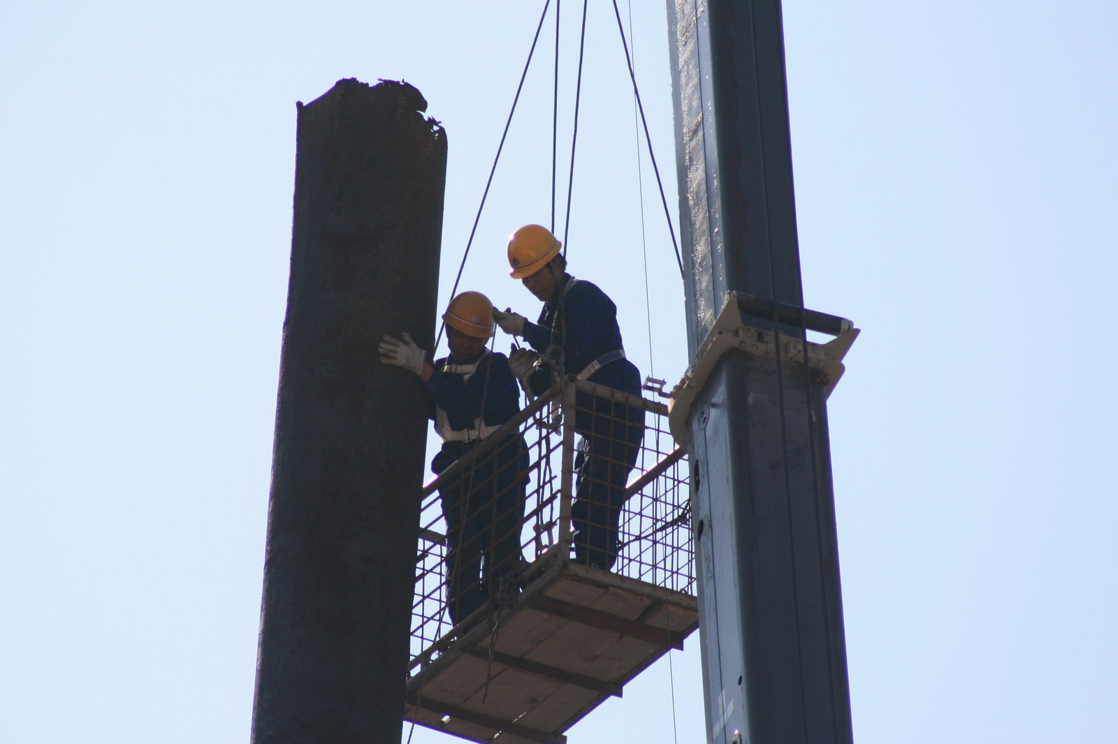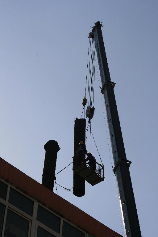 救護(hù)大隊鍋爐房建于1987年,如今已經(jīng)有23年的歷史了。高達(dá)30米的煙囪是生鐵鍛造的,年代久遠(yuǎn),長期風(fēng)化,不明原因?qū)е聼焽栌辛嗣黠@的傾斜。這一險情如不及時解除,將隨時可能危及附近居民的安全,并直接影響救護(hù)大隊上百戶職工家屬的供暖。