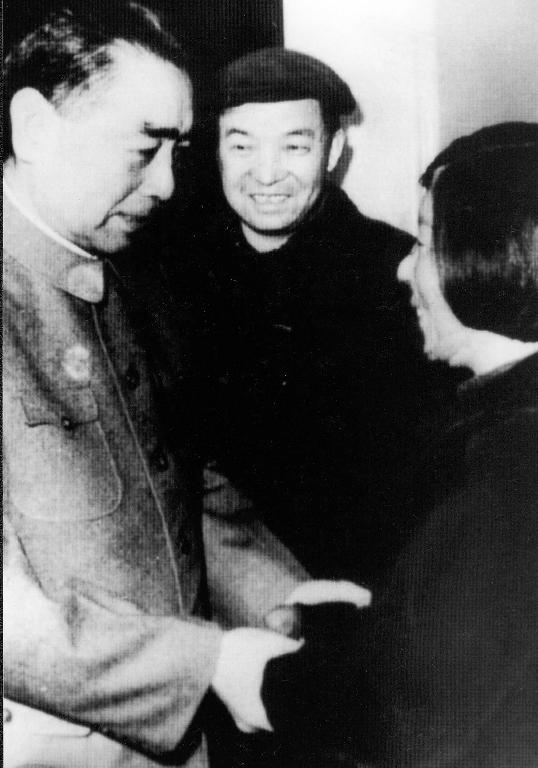 與鐵人王進(jìn)喜(中)一起受到周恩來總理的親切接見(歷史資料翻拍)
