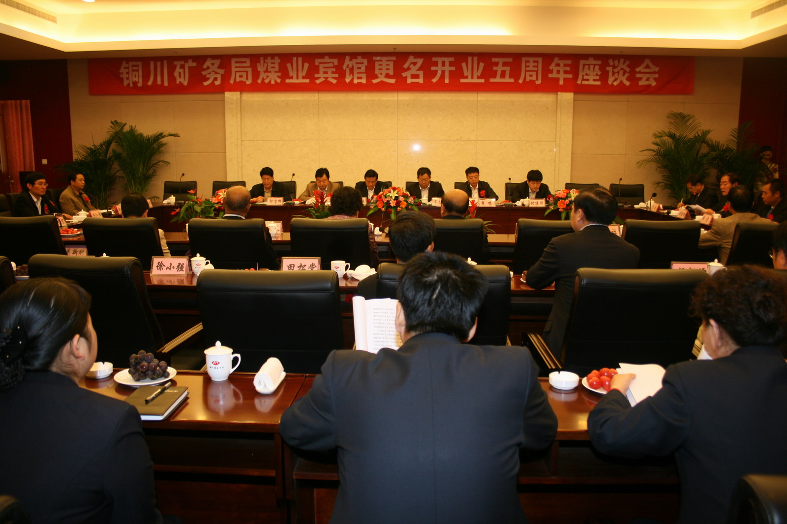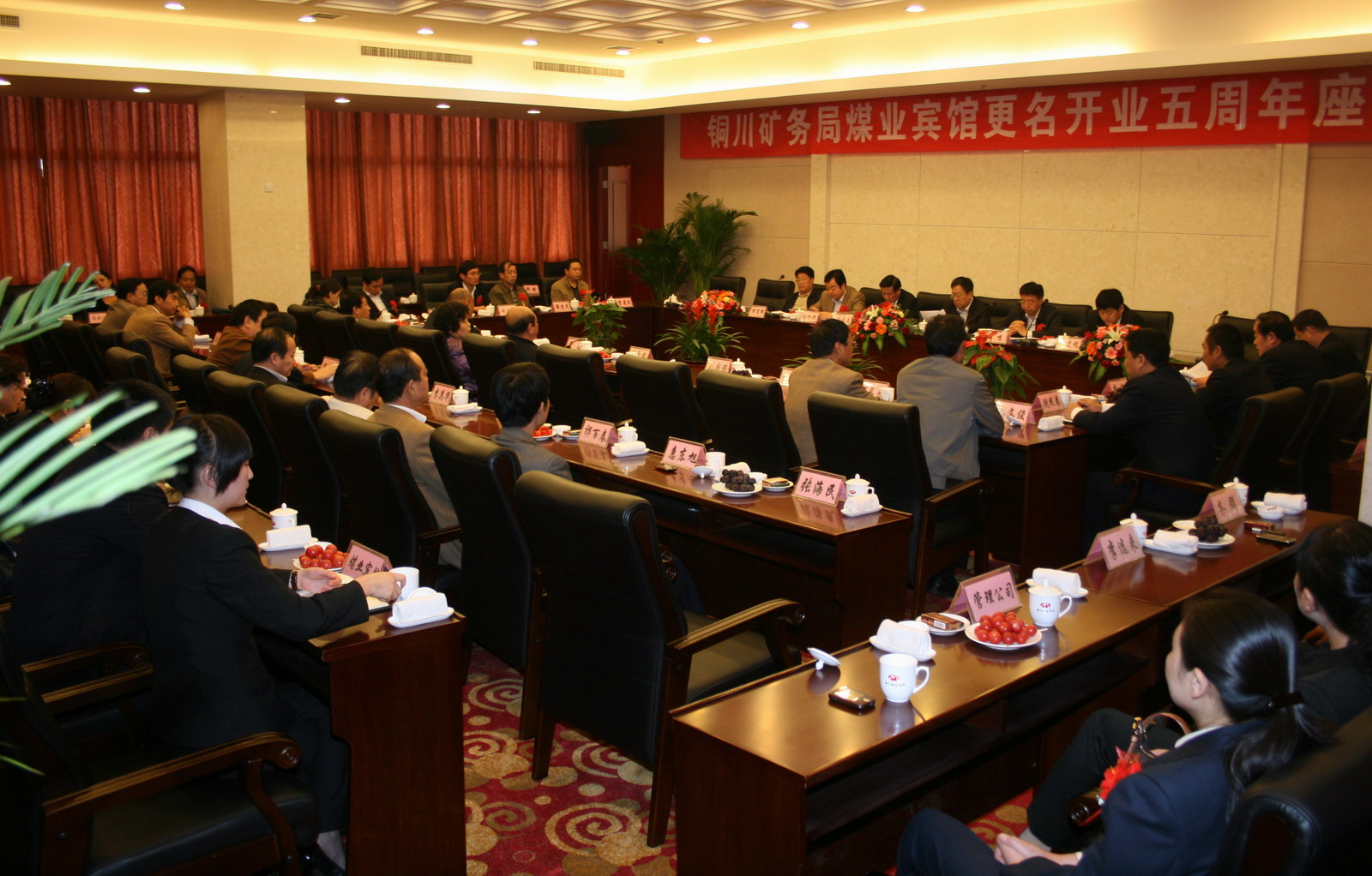 10月18日上午,銅川煤業(yè)賓館更名開業(yè)五周年座談會(huì)在煤業(yè)賓館餐廳樓三樓會(huì)議室召開。局長宋志剛,局黨委副書記、紀(jì)委書記張志文,副局長劉水利、薛鳴、郭寶輝、封建利,局副總延永華、孔令義、黨敏、劉長來,局各有關(guān)處室、部門、單位負(fù)責(zé)人等近百人參加了會(huì)議。銅川市公安局虹橋分局、陜西旅游飯店管理有限責(zé)任公司等單位領(lǐng)導(dǎo)應(yīng)邀出席會(huì)議。座談會(huì)由副局長薛鳴主持。