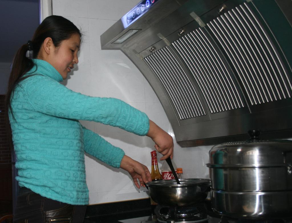 礦工家屬在搬遷不久的新房里首次用天然氣做飯