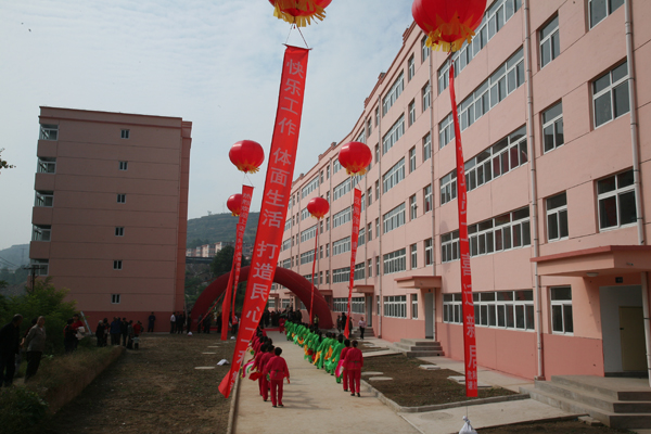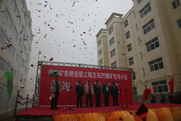 金秋送爽,花果飄香。9月27、28日,銅川礦務(wù)局分別在東坡、鴨口、徐家溝、金華山、王石凹等七個(gè)礦井舉行安居工程插建小區(qū)竣工移交儀式,新建55棟住宅樓,建筑面積24萬平方米將使礦區(qū)的3600名新住戶結(jié)束幾十年的低矮破舊的棚戶房,搬入水、氣、暖配套齊全、寬敞明亮的住宅新樓。此時(shí)此刻,住宅小區(qū)鑼鼓喧天,彩旗飛舞,鞭炮齊鳴,熱鬧非凡。局長(zhǎng)宋志剛、局黨委書記杜樹山、副書記李志科、礦區(qū)工會(huì)主席張仿文、副局長(zhǎng)薛鳴、郭寶輝出席,局棚改辦、規(guī)劃處、財(cái)務(wù)處、審計(jì)處、監(jiān)察處、局行辦、黨辦、礦區(qū)工會(huì)、宣傳部以及華瑞公司、監(jiān)理公司等部門和單位的負(fù)責(zé)人參加了移交儀式。《陜西日?qǐng)?bào)》、《陜西工人報(bào)》、《三秦都市報(bào)》、《西安晚報(bào)》、《華商報(bào)》、《銅川日?qǐng)?bào)》、銅川電視臺(tái)等省、市新聞媒體現(xiàn)場(chǎng)進(jìn)行了采訪報(bào)道。