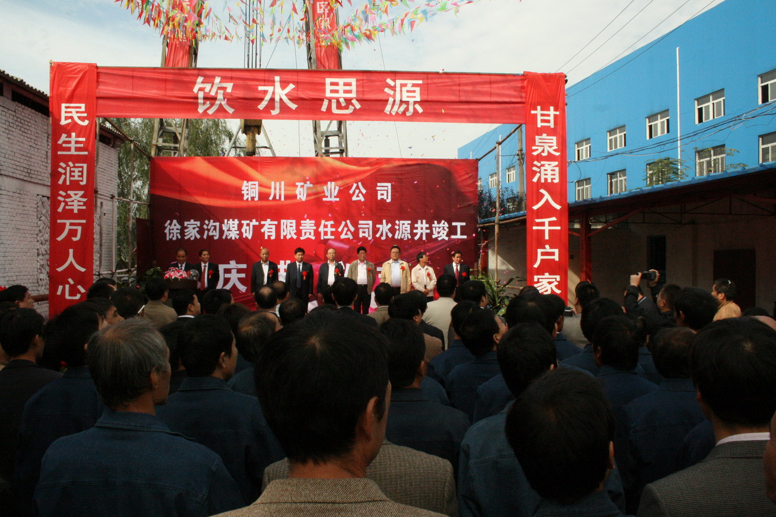 銅川礦業(yè)公司黨委常委、常務(wù)副局長(zhǎng)黃河,副局長(zhǎng)郭寶輝,副局長(zhǎng)兼總工程師劉啟科,公司副總工程師孔令義、戴耀輝、劉長(zhǎng)來(lái),公司辦公室、規(guī)劃處、動(dòng)力處、地測(cè)處、宣傳部、設(shè)計(jì)院等有關(guān)處室負(fù)責(zé)人,承擔(dān)徐家溝公司水源井工程具體施工的地勘公司和徐家溝公司等單位領(lǐng)導(dǎo)干部及職工家屬近千人參加了典禮儀式。