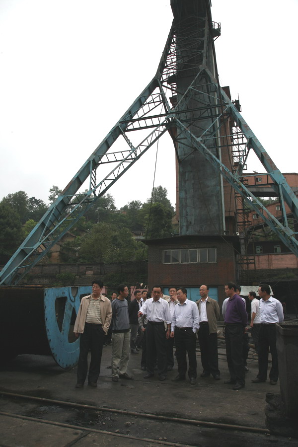 鴨口礦停產(chǎn)檢修,局長一行到井口查看