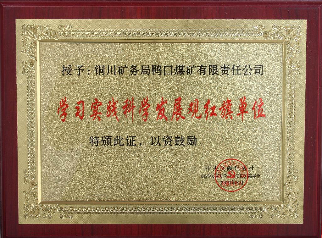 今年以來,鴨口公司以科學(xué)發(fā)展觀為統(tǒng)領(lǐng),圍繞工作目標(biāo),創(chuàng)新思維,強(qiáng)化職能,統(tǒng)籌推進(jìn),安全、生產(chǎn)、經(jīng)營、排治水等各項(xiàng)工作取得了良好發(fā)展態(tài)勢,被中央文獻(xiàn)出版社《科學(xué)發(fā)展觀與實(shí)踐》編委會(huì)評(píng)為學(xué)習(xí)實(shí)踐科學(xué)發(fā)展觀紅旗單位。