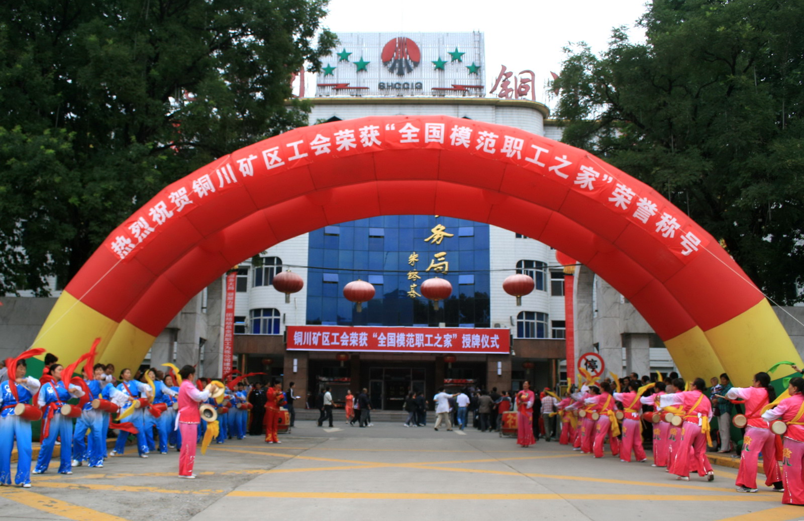 8月25日上午,銅川礦業(yè)公司機(jī)關(guān)辦公大院,鑼鼓喧天,軍樂陣陣,鞭炮齊鳴,彩虹門、紅地毯和數(shù)條巨幅標(biāo)語相映成輝。上午10時(shí)許,銅川礦區(qū)工會(huì)榮獲“全國模范職工之家”榮譽(yù)稱號(hào)授牌儀式在這里隆重舉行。