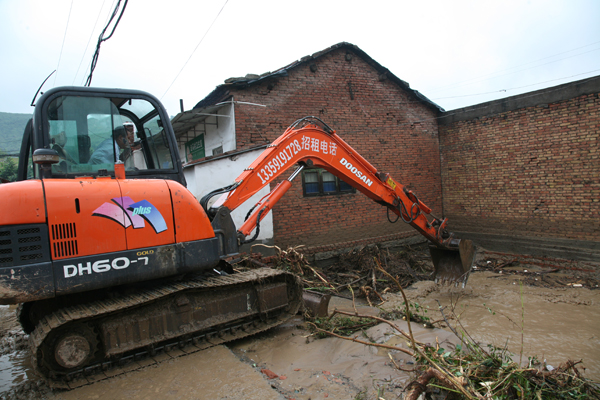 災(zāi)情發(fā)生在24日凌晨1時許,陳家山礦啟動“三防”應(yīng)急預(yù)案,組織疏散區(qū)域5處2600多人。在河堤垮塌、橋梁垮塌等危險區(qū)域設(shè)立警戒線。組織人員對被沖進(jìn)河中的5輛汽車進(jìn)行疏通,確保河水及時泄洪。24日早8點40分,陳家山礦將災(zāi)情上報局調(diào)度室。9點整,局長宋志剛、礦區(qū)工會主席張仿文、副局長郭寶輝、副局長封建利等局領(lǐng)導(dǎo)帶領(lǐng)安監(jiān)局、總調(diào)度室、規(guī)劃處、財務(wù)處、宣傳部、工會等部門負(fù)責(zé)人冒雨趕往陳家山礦。因道路不通,緊急調(diào)動局鐵運公司自營鐵路機(jī)車頭,由田家嘴車站前往陳家山礦指揮搶險救災(zāi)。