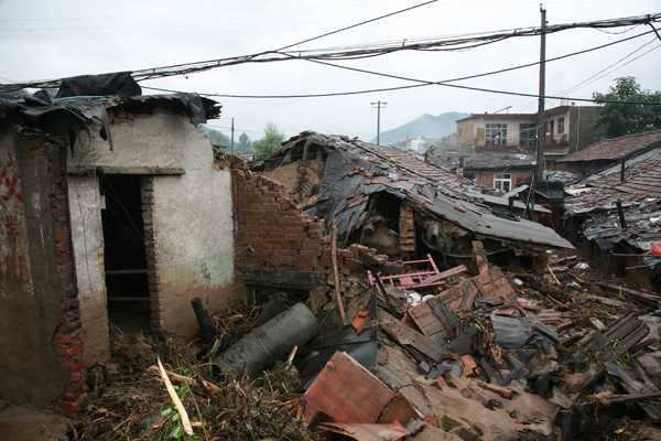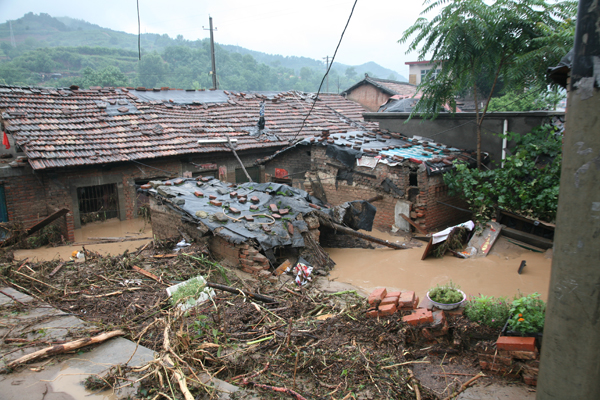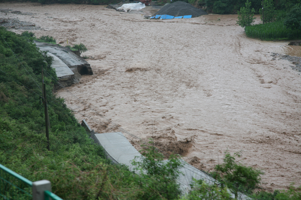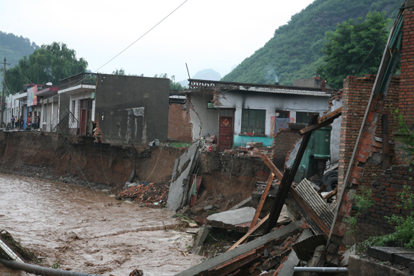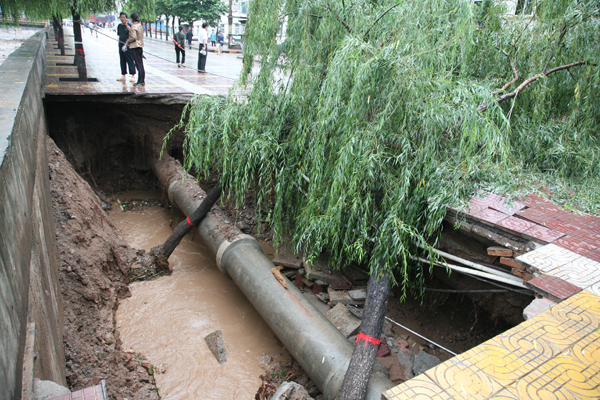 7月23日晚,陳家山礦遭受建礦30年未遇特大暴雨襲擊,造成毀損房屋50戶,215人無家可歸。受傷住院6人,無人員傷亡。沖毀道路5處,使去陳家山的整個道路停運。礦區(qū)內(nèi)3座簡易橋被沖毀,多處河堤垮塌,有數(shù)十米山體滑坡。造成天然氣管路暴露,暫停供氣,多戶居民生活困難。3.5萬KM變電所供安子溝一、二回路供電線路7根電線桿根部懸空,一棵大樹將一回路供電線路壓住,影響供電,生活供電中斷。安子溝有5處供水管路支墩懸空,供水中斷。電信受損,電話無法接通。安子溝風(fēng)井防爆門塌陷、漏風(fēng)(已處理,現(xiàn)井下生產(chǎn)系統(tǒng)運行可靠,生產(chǎn)正常)。安子溝灌漿站被沖埋、管路被沖斷,無法灌漿。據(jù)不完全統(tǒng)計,僅天然氣管道、水管道、道路修復(fù)損失就達(dá)千萬元以上,居民財產(chǎn)損失還在進(jìn)一步統(tǒng)計之中。目前,礦上人出不來,外邊人進(jìn)不去,上萬名職工群眾被困礦區(qū),陳家山礦處于“孤島”狀態(tài)。